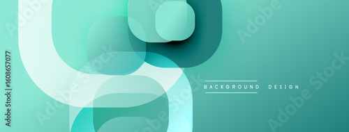 Abstract teal background features overlapping translucent shapes. Minimalist design evokes fluidity, modern aesthetic. Subtle gradients create depth.
