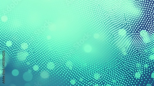 Abstract Teal Background with Wavy Dotted Pattern and Bokeh Lights