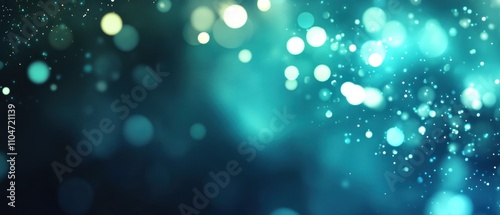 Abstract teal bokeh background with glowing particles and blurred lights.