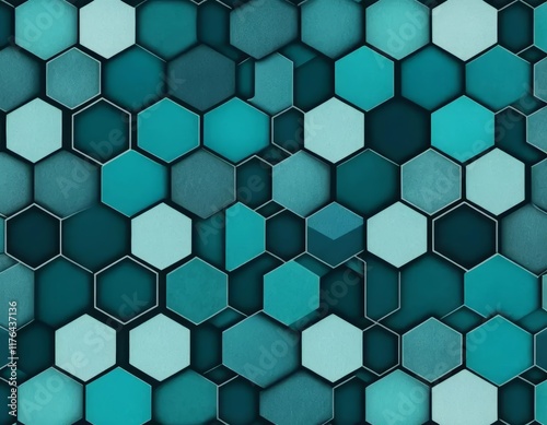 Abstract Teal Hexagon Geometric Pattern Background, Modern 3D Honeycomb Texture Design