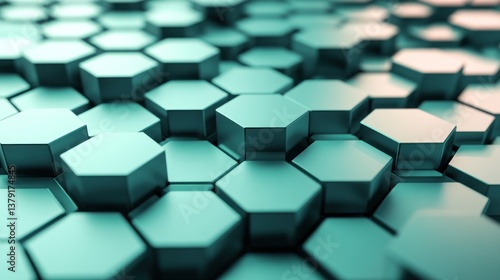 Abstract Teal Hexagon Pattern: A 3D Render of Interlocking Geometric Shapes