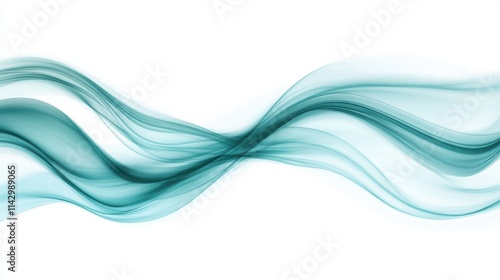 Abstract Teal Waves Flowing Gracefully Across White Background