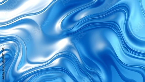 Abstract tech background with flowing liquid metal texture in blue and silver tones.