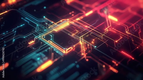 Abstract tech background with glowing digital lines, circuit board designs, and futuristic light effects, symbolizing modern technology innovation