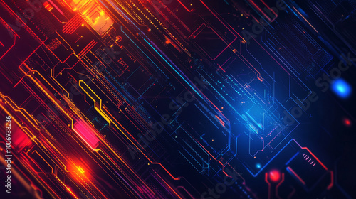 Abstract tech-inspired background with layered circuit patterns and digital textures, sleek and futuristic design,