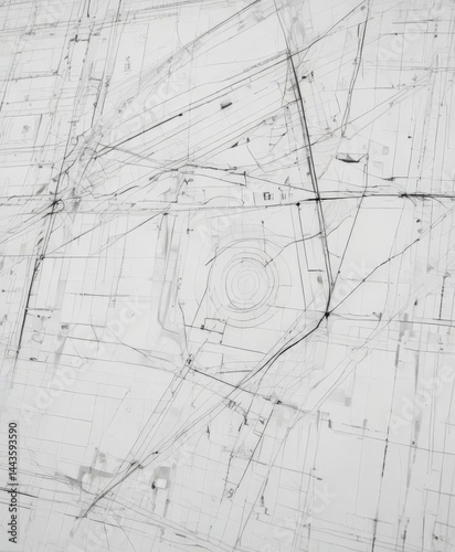 Abstract technical drawing effect, black lines on white, blueprint style, diagram, engineering