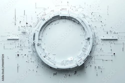 Abstract Technological Circular Design: White Digital Futuristic Concept