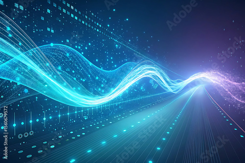 Abstract technology background AI data stream flowing in digital space