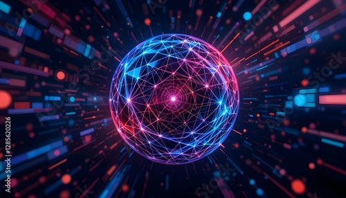 abstract technology background features a mesmerizing polygonal globe design, with intricate geometric shapes and vibrant colors creating a visually stunning and futuristic backdrop that captures ...