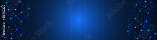 Abstract technology background of global network connection and communication with connecting the dots and lines for banner design or header