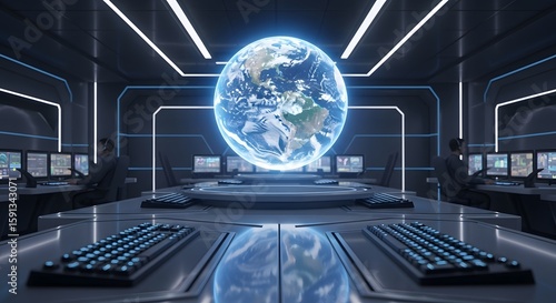 Abstract technology background with a blue planet earth globe, illustrating global internet connection and network communication
