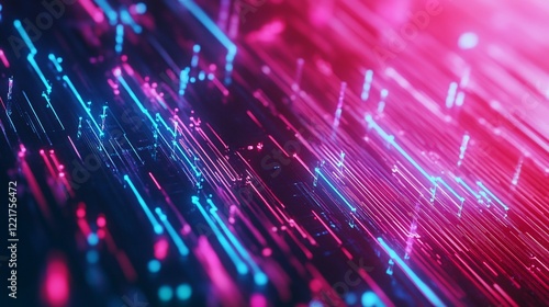 Abstract Technology Background with Blue and Pink Lines, Digital Data Stream