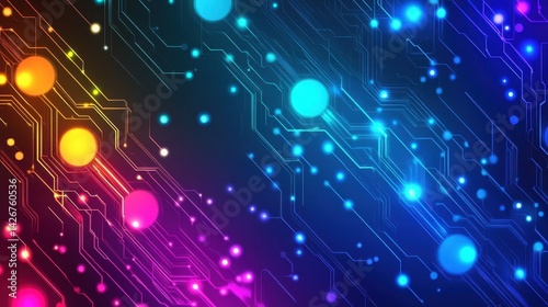 Abstract technology background with circuit board and glowing nodes. Concept for digital, network, and futuristic themes.