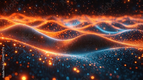 Abstract Technology Background with Colorful Waves and Particles for Presentation and Slide Designs in Digital Environments