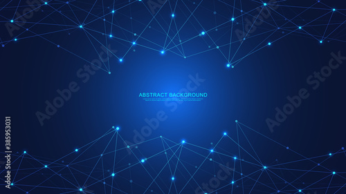 Abstract technology background with connecting dots and lines. Digital technology of global network connection and communication.