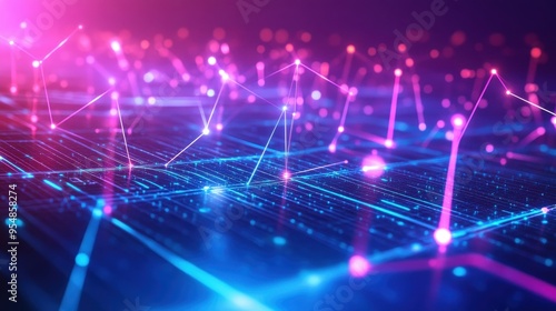 Abstract Technology Background with Glowing Lines and Dots in Pink and Blue Colors.