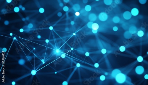 Abstract Technology Background With Glowing Lines, Dots, Interconnected Nodes, And Bokeh Effect