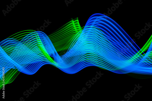 Abstract technology banner design. Digital neon lines on black background. Modern texture. Waves flow. Quantum explosion.