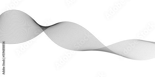 Abstract technology lines on white background. Undulate Grey Wave Swirl, frequency sound wave, twisted curve lines with blend effect, wave with lines created using blend tool.