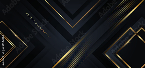 Abstract template black and grey geometric oblique with golden line layer on black background. Luxury style.