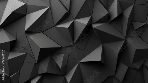 Abstract texture dark black gray background banner panorama long with 3D geometric triangular gradient shapes for website, business, print design template. Sleek and modern design, minimalist
