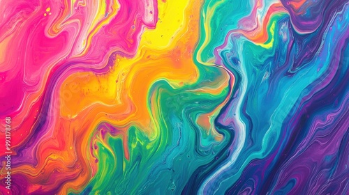Abstract texture of marbled acrylic paint featuring vibrant rainbow colors A colorful background banner with dynamic swirls and curves