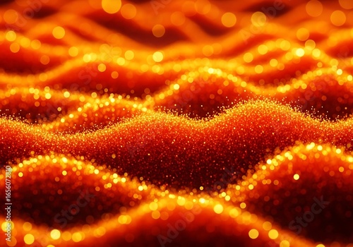 Abstract Texture Orange Glittering Wavy Surface with Sparkling Light and Shimmering Glow