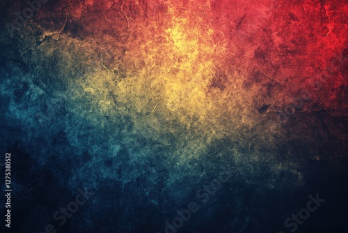 Abstract textured background featuring a gradient of red, yellow, and blue hues, creating a vibrant and dynamic visual effect