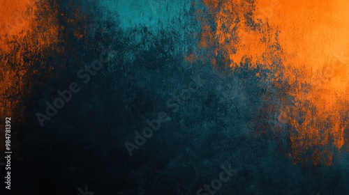 Abstract textured background in vibrant orange and deep turquoise hues, creating a striking contrast.