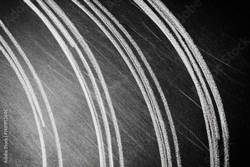 Abstract, textured pattern of white curved lines on a dark background. Detailed close-up view of the lines' varied thicknesses and overlapping nature