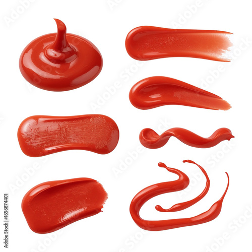 Abstract tomato sauce strokes collection with dynamic shapes against an isolated clear space