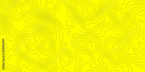 Abstract topographic map lines and bright yellow background creating a seamless pattern, perfect for modern and abstract design projects.