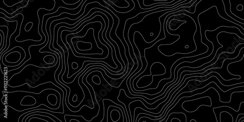 Abstract topography map with black background. Abstract Grey and white line geography map pattern line vector design.