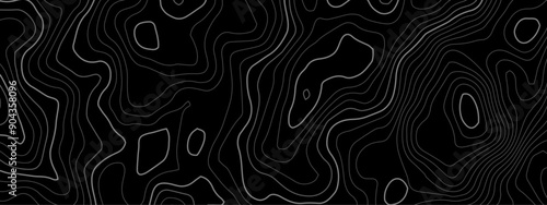 Abstract topography wave paper curved reliefs white line black background, contours topography map background, topography and geography map grid background, Abstract vector illustration.