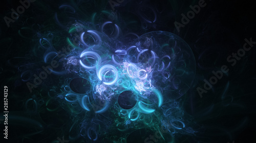 Abstract transparent blue crystal shapes. Fantasy light background. Digital fractal art. 3d rendering.