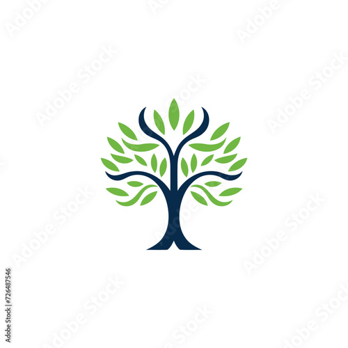 abstract Tree of Life logo. Organic nature symbol. Tree branch with leaf sign. Natural plant design element emblem. Vector illustration.