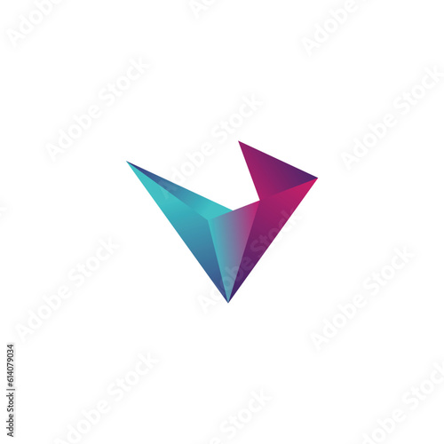abstract trendy multicolored logo design element in letter v shape