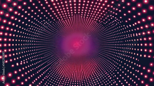 Abstract tunnel with red dots, vibrant and futuristic perspective view.