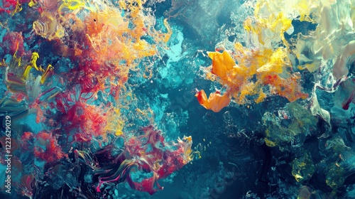 Abstract underwater scene with vivid colorful swirling patterns and textures