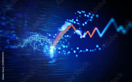 Abstract Upward Arrow Representing Stock Market Growth on Blue Digital Background, Vector Illustration for Financial Presentation Design