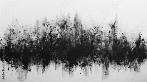 Abstract urban skyline in black and white paint splatter design for modern art decor