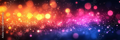 Abstract Valentine rainbow wide background, with bokeh effects, filled with warm lights, with a dreamy appearance of glowing lights, an ethereal, magical, and serene mood for a holiday theme