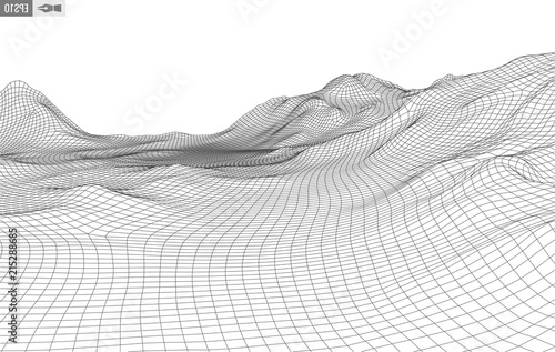 Abstract vector landscape background. Cyberspace grid. 3d technology illustration.