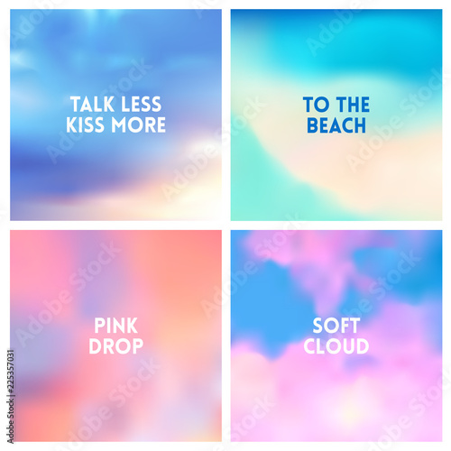 Abstract vector multicolored blurred background set. 4 colors set. Square blurred pink backgrounds set - sky clouds sea ocean beach colors