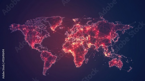Abstract vector world map highlighting global telecommunication networks with data connections. Modern illustration showcasing business and network interactions.