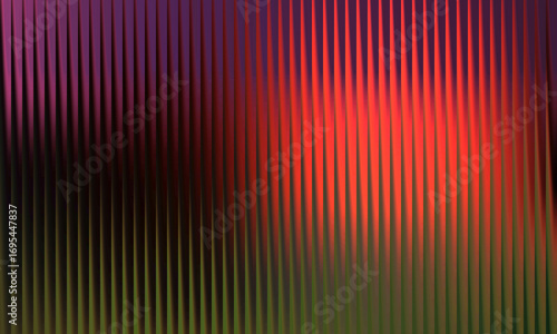 Abstract vertical ribbed surface with red orange and green gradient light effects background texture