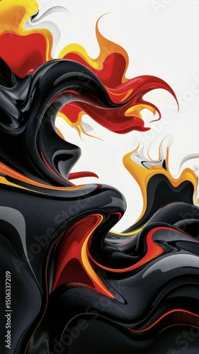 Abstract Vibrant Liquid Swirls in Red, Black, and Yellow Color Palette