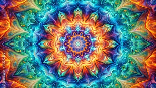 Abstract Vibrant Mandala A Kaleidoscope of Swirling Hues and Intricate Floral Patterns
