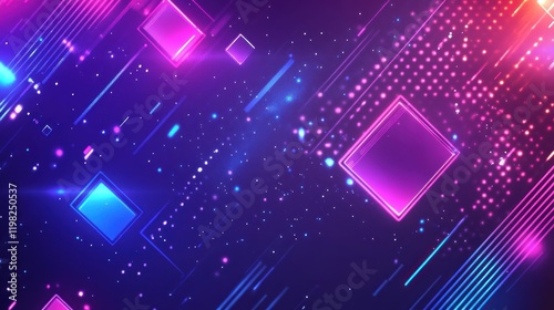 Abstract vibrant neon geometric shapes background.