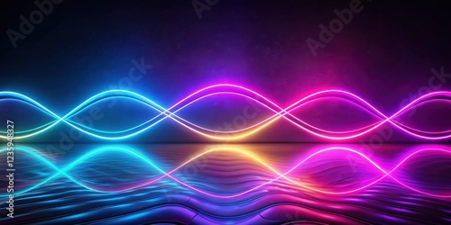 Abstract Vibrant Neon Lights Forming Intertwined Waves Reflected on a Distorted Surface